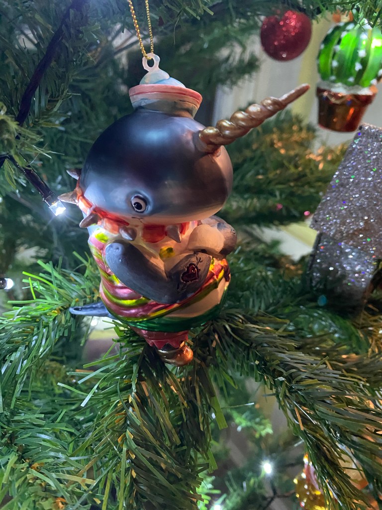 I picked the narwhal bauble because the tusk reminded me of that awful terror attack on London Bridge last year. Not that I like being reminded of terror attacks…it was the fact that an old narwhal tusk was used to subdue the attacker. The tusk was plucked off the wall at the Fishmongers Hall and used as a weapon against the knife welding terrorist…..the other baubles….well I just like them.