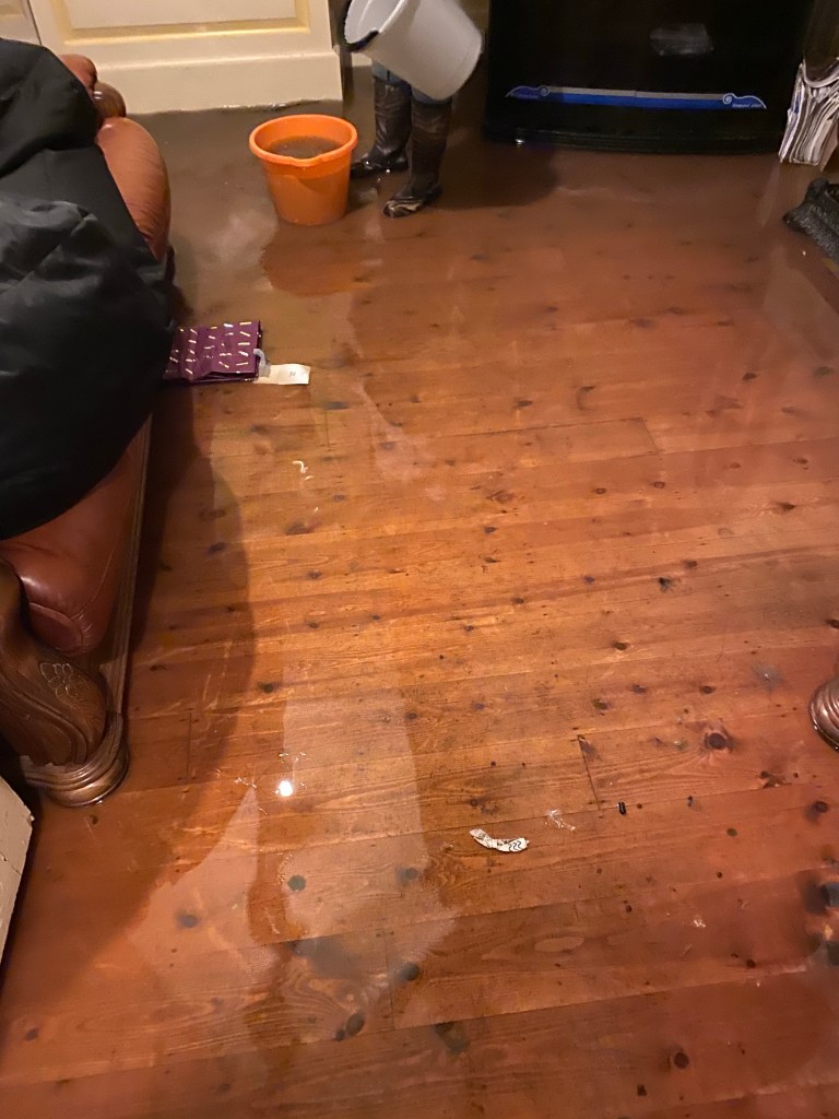My sister and I had now realised that water was now entering the living room rapidly. But it wasn’t coming through the front door anymore. It was coming up through the floorboards.