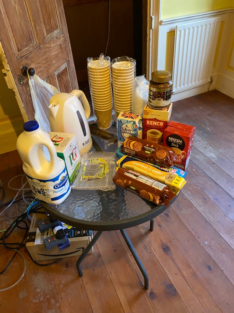 The roofers are due tomorrow to start work on the old roof. My very first post was about that bloody roof! Anyway at least it’s getting sorted. I’ve set up a brew station for the roofers. Complete even with biscuits and cappuccino sachets….I need a couple of extra tiles on one of the out buildings 😉