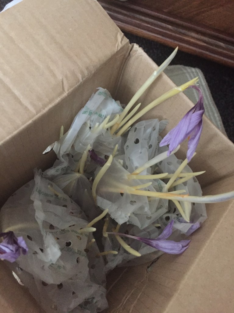 Now talking about growing veg, last year I got a Strange idea that I would grow saffron. I purchased a few bulbs from the royal horticultural society and then for some reason just left them in the garage in a box. Well when I went to check on them they had grown and actually produced saffron. They were still sat in the box! So this year when the bulbs are ready in autumn I will be purchasing a few more and hopefully growing Loftus saffron.