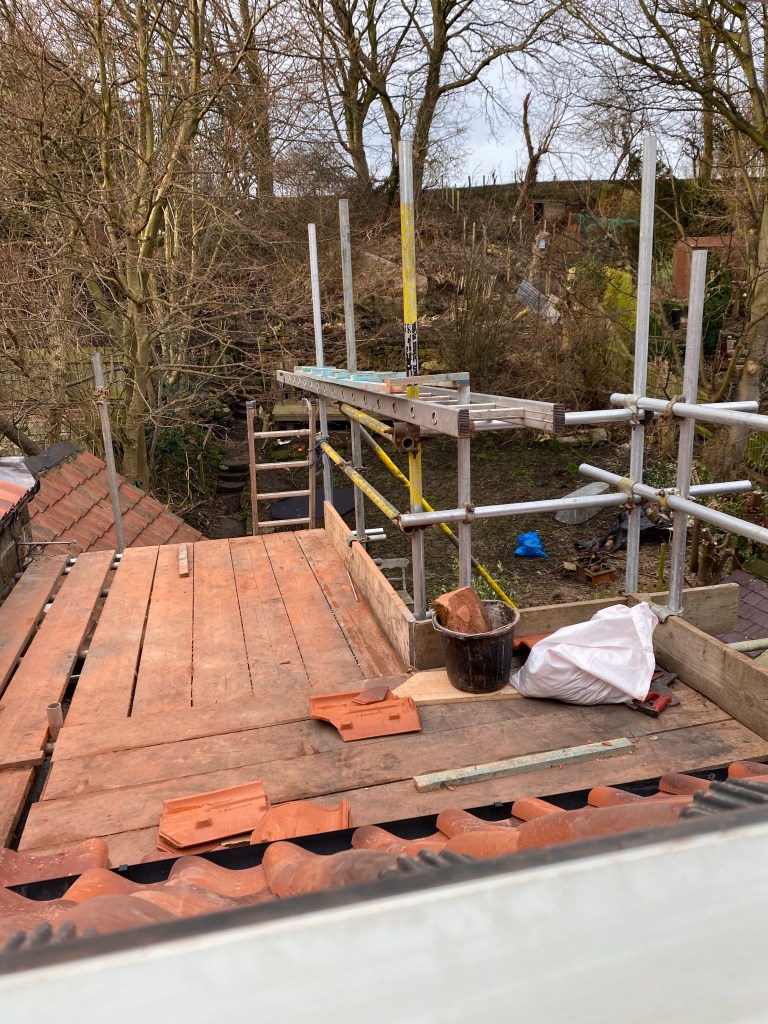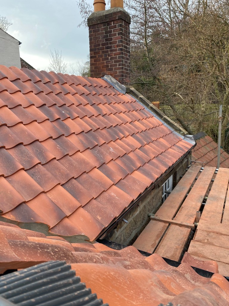 Things are coming along nicely with the roof. Another week and it will be done. This was a very unusual roof with its ship mast beams and apple store. A challenge the roofers seemed to enjoy. After the roof is complete a new challenge of the ground floor being totally redecorated by the insurance company will commence. This isn’t going to be easy as the wood panelling in the living room is centuries old and in truth neither I nor the insurance really want to touch it. But it is likely there is contaminated flood water behind it.